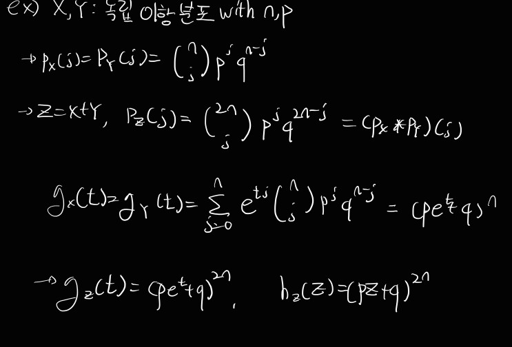 => hz(Z), gz(t)를 통해 Z(X+Y)도 역시 이항 분포를 가짐을 알 수 있다.