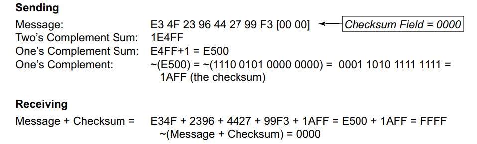 인터넷 체크섬은 16비트의 수학적 합이다. 이는 수신된 메시지가 송신되었을 때와 일치하는지 확인하는데 사용된다. CRC와는 다르며 CRC가 더 강력한 보호 기능이다.