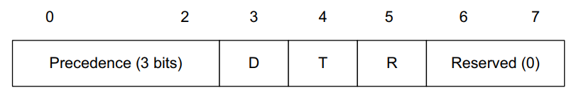 D,T,R 서브필드는 데이터그램이 Delay, Throughput, Reliability 측면에서 우선적으로 처리되어야 함을 나타낸다. 값이 1이면 각각 낮은 지연, 높은 처리량, 높은 신뢰성을 제공하도록 요청하는 것을 의미한다.