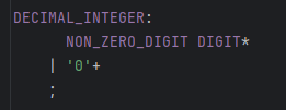 이 DECIMAL_INTEGER를 표현하는데 method가 필요하지는 않을 것 같다. 그저 [1-9] + [0-9]의 반복으로 표현이 가능한 것이다. 그리고 이 DECIMAL_INTEGER 표현을 이용하는 정의는