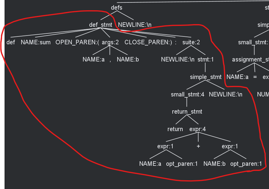 따라서 program -> file_input -> defs 순으로 먼저 파싱이 될 것이다.